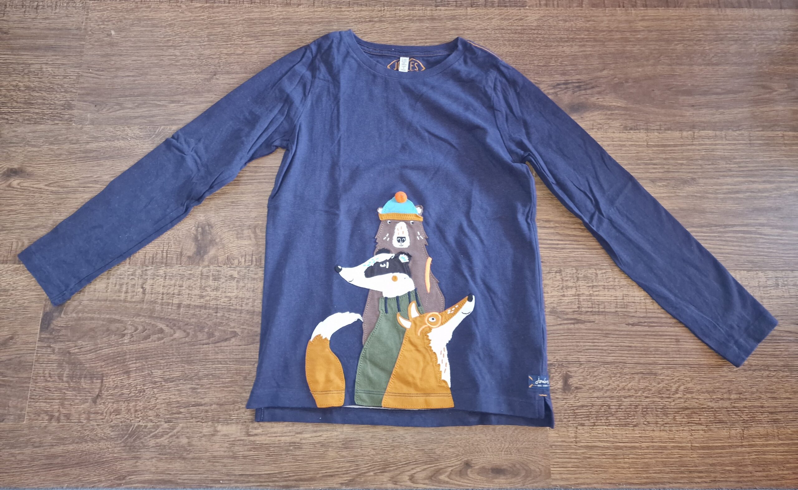 Joules erdei állatos vastagabb anyagú pamut felső rávarrt mintával. 9-10 évesre való 134-140-es méret. Újszerű hibátlan állapotú