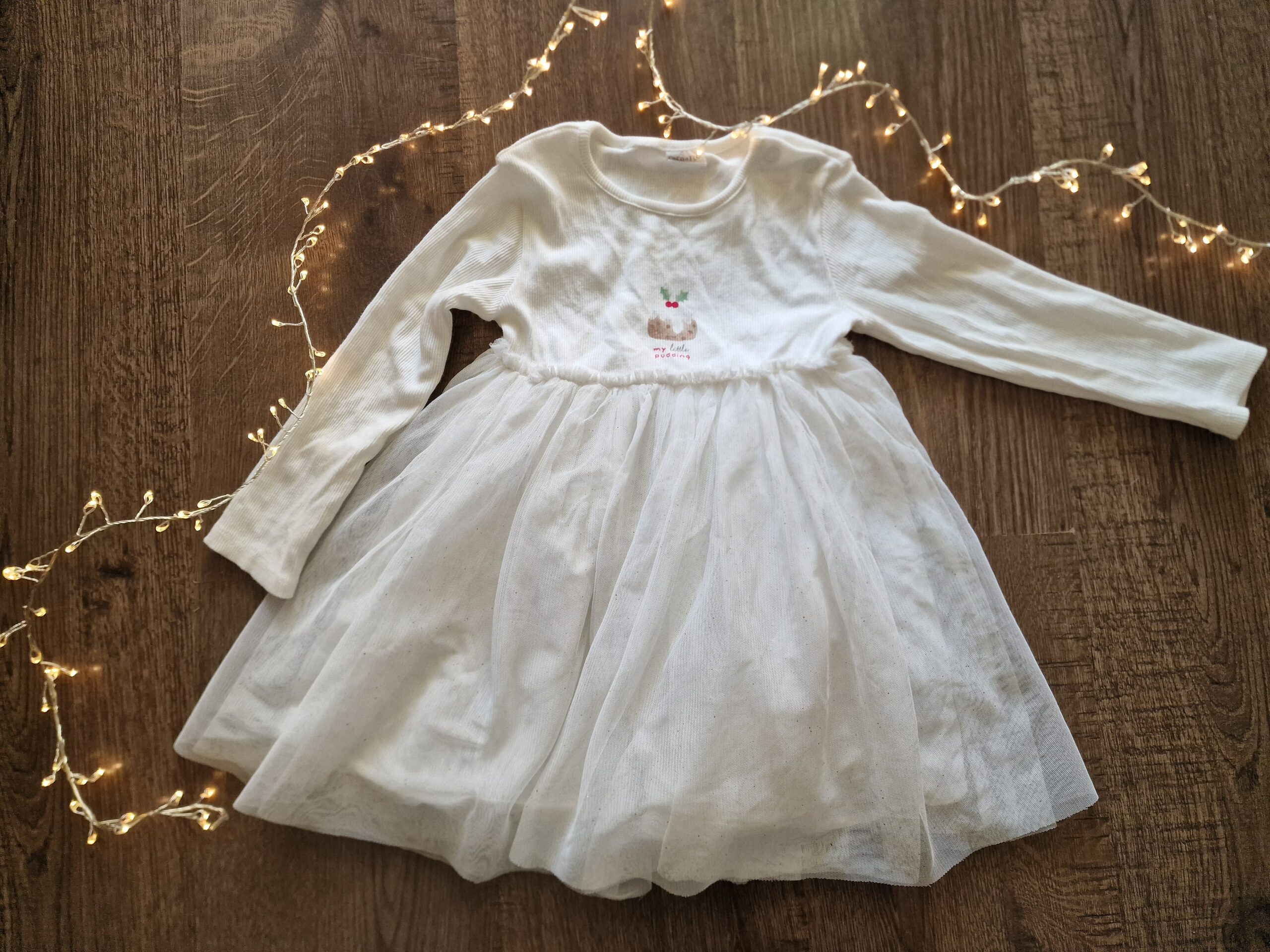 F&F fehér enyhén csillogó tüllös alkalmi karácsonyi ruha 18-24 hós 86-92-es. Újszerű, hibátlan