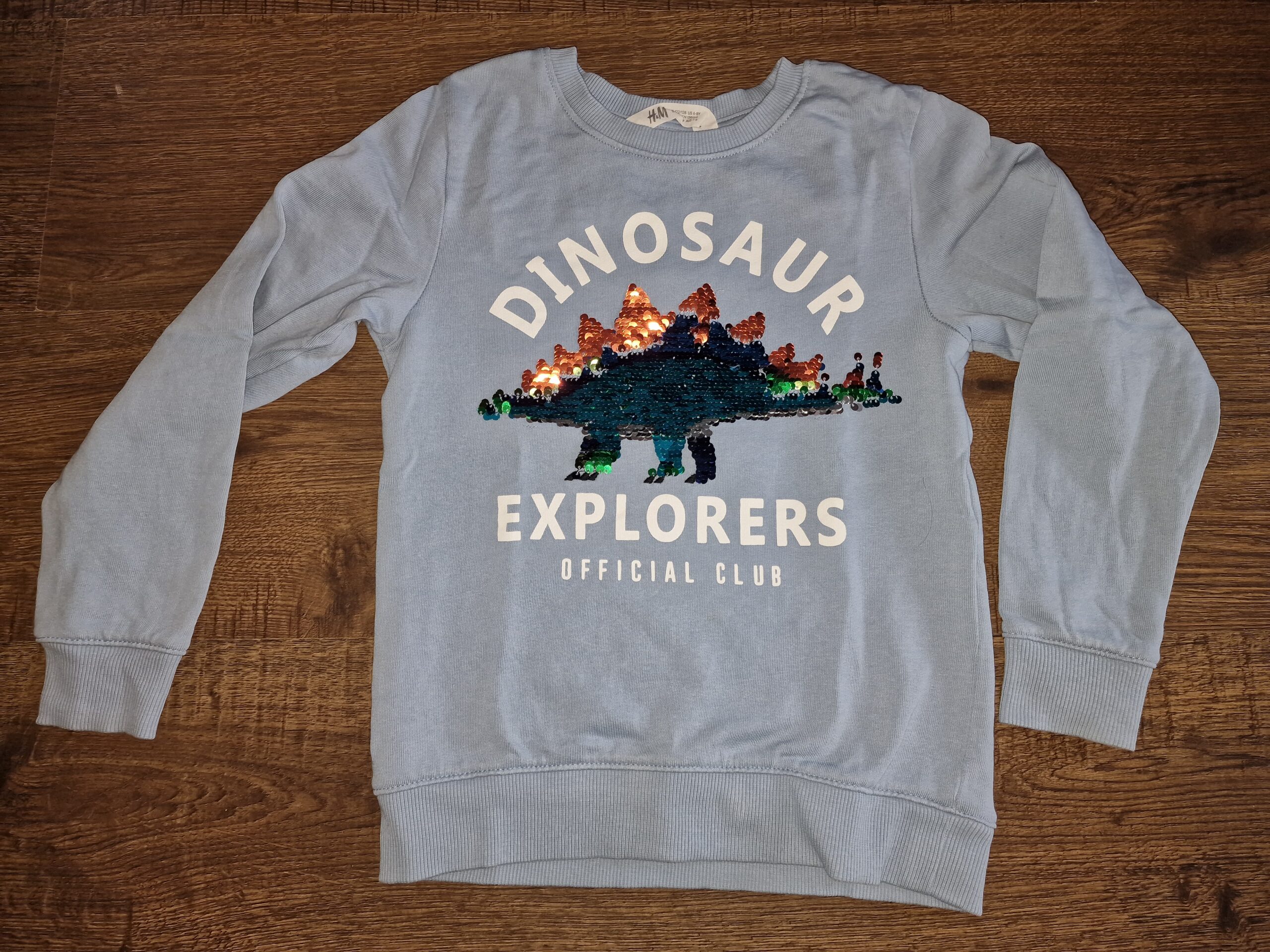 H&M dinós flitteres pulóver 122-128-as méretben. Újszerű, hibátlan állapotú