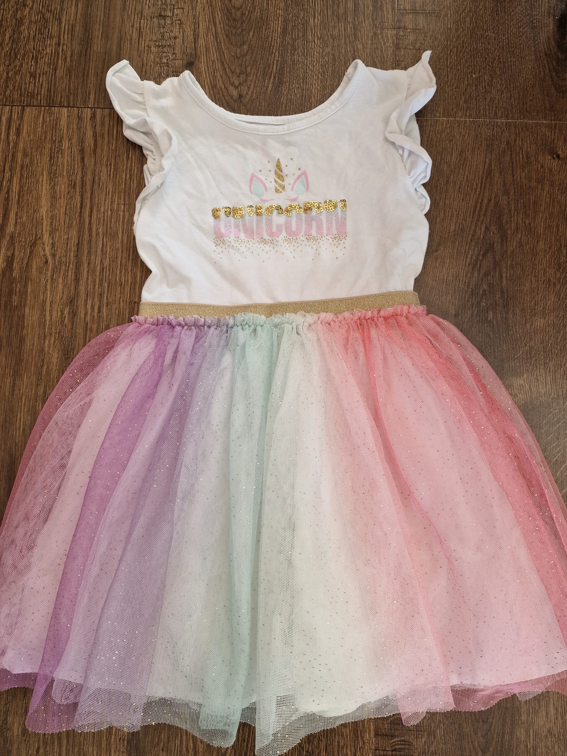 Primark 2-3 évesre való 92-98-as újszerű, hibátlan unikornisos ruha. Szülinapra vagy csak úgy. Színes tüllös csillogós szoknyarésszel