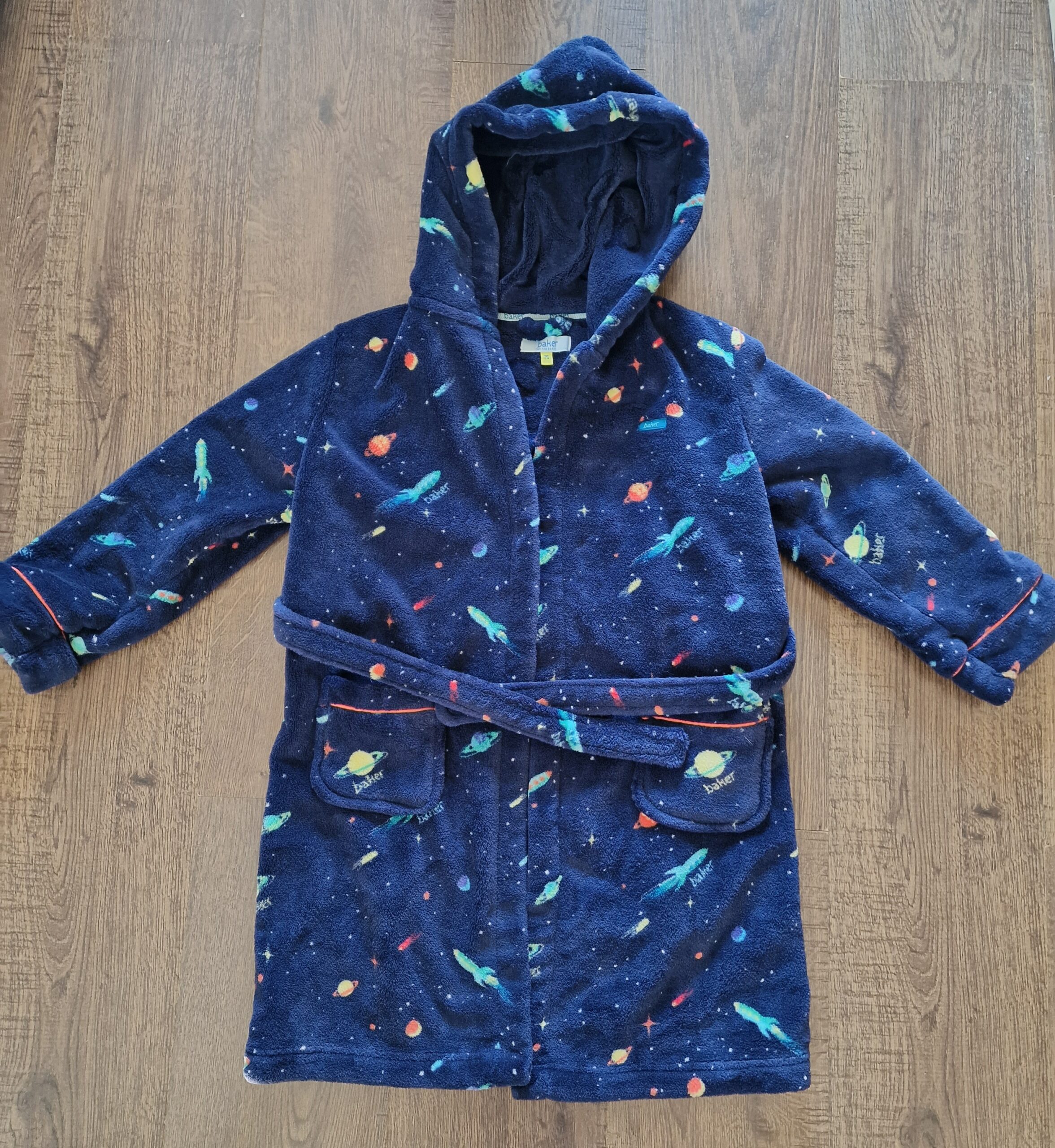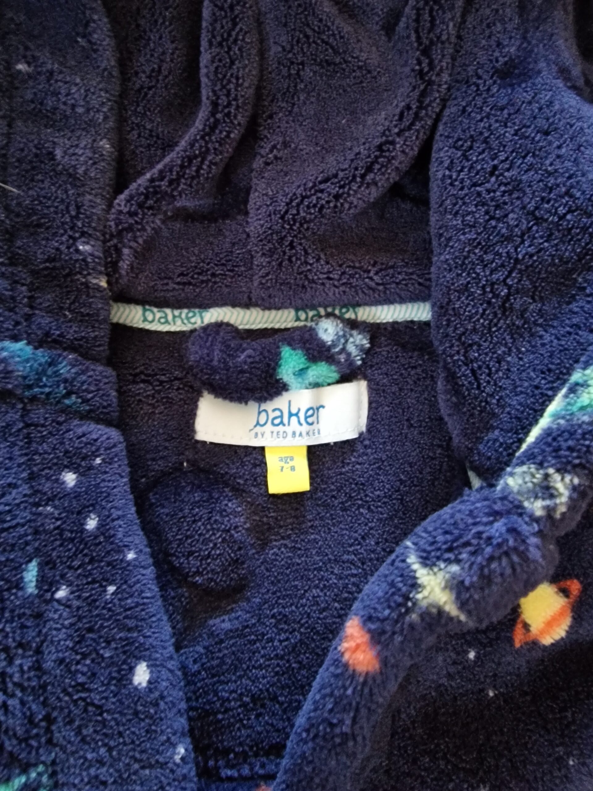 Ted Baker 7-8évesre való 128-as (134-es méretig is hordható) egy wellnes hétvégén viselt újszerű hibátlan pihepuha bolygó mintás köntös